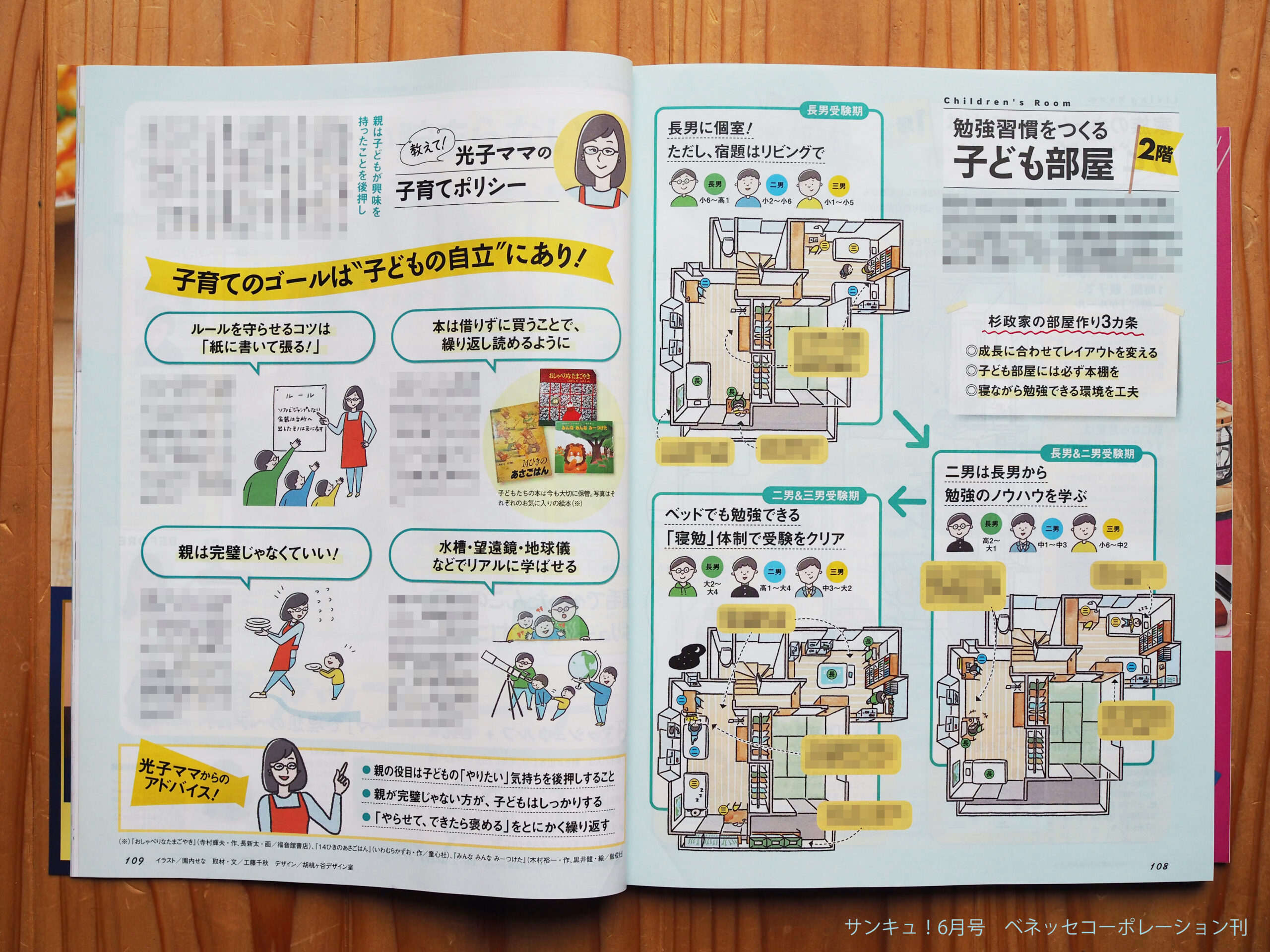 Works 『サンキュ!2022年6月号』東大の家特集 senasonouchi 2022年5月9日 サンキュ!6月号にて『東大の母に聞く、学ぶのが好きな子になる家ってどうつくる?』特集のイラストを担当しました。 扉 間取りイラスト01 ポイントイラスト 間取りイラスト02 誌面01 誌面02