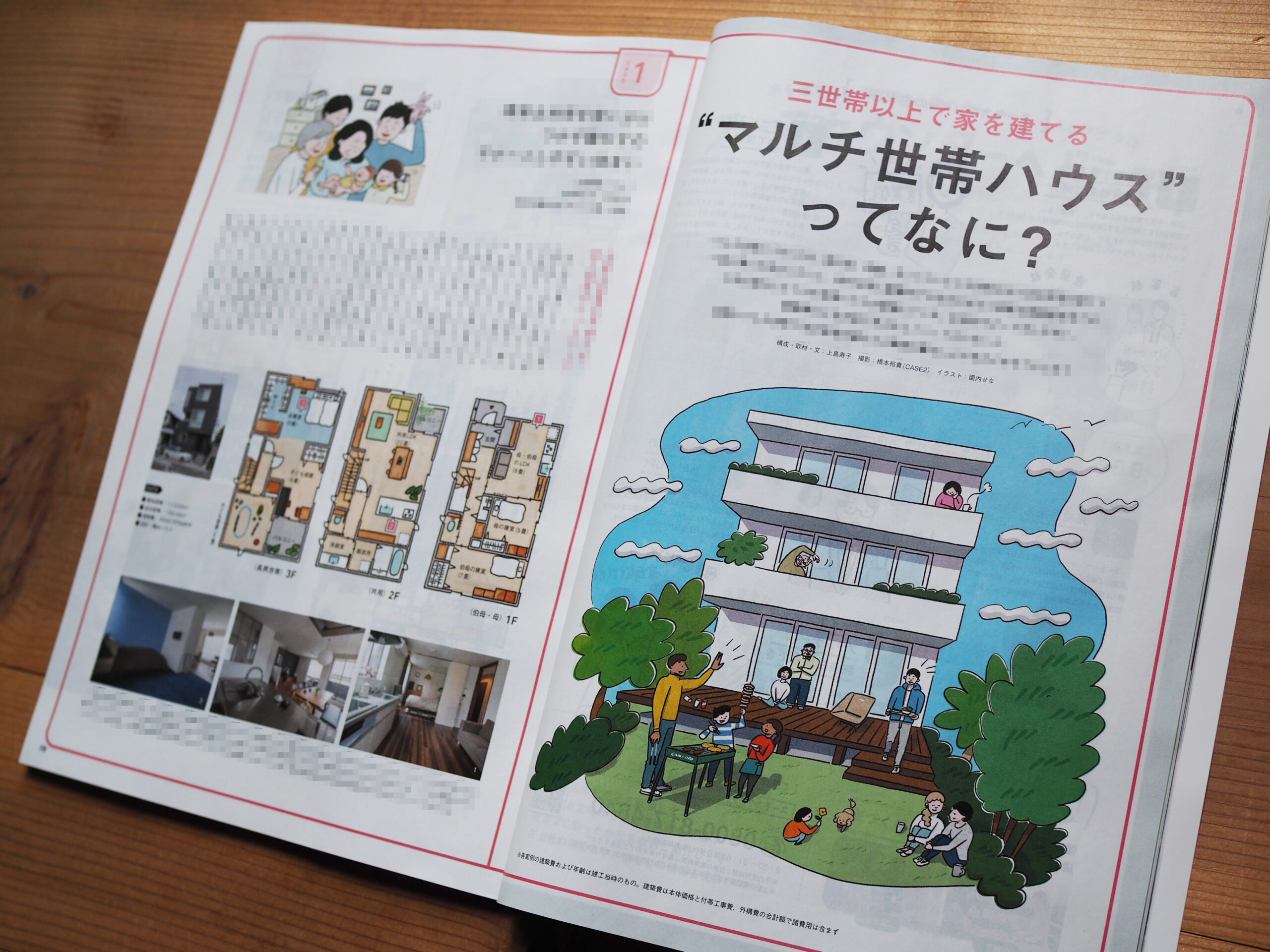 Works 『SUUMO10月号』マルチ世帯ハウスとは?特集扉・挿絵 senasonouchi 2023年12月6日 SUUMO10月号『マルチ世帯ハウスとは?』特集の扉・挿絵を描きました。 挿絵は各世帯お住まいのご家族の似顔絵と間取りです。 誌面01 ご家族似顔絵 ご家族似顔絵 ご家族似顔絵 ご家族似顔絵 誌面02 間取り挿絵 扉